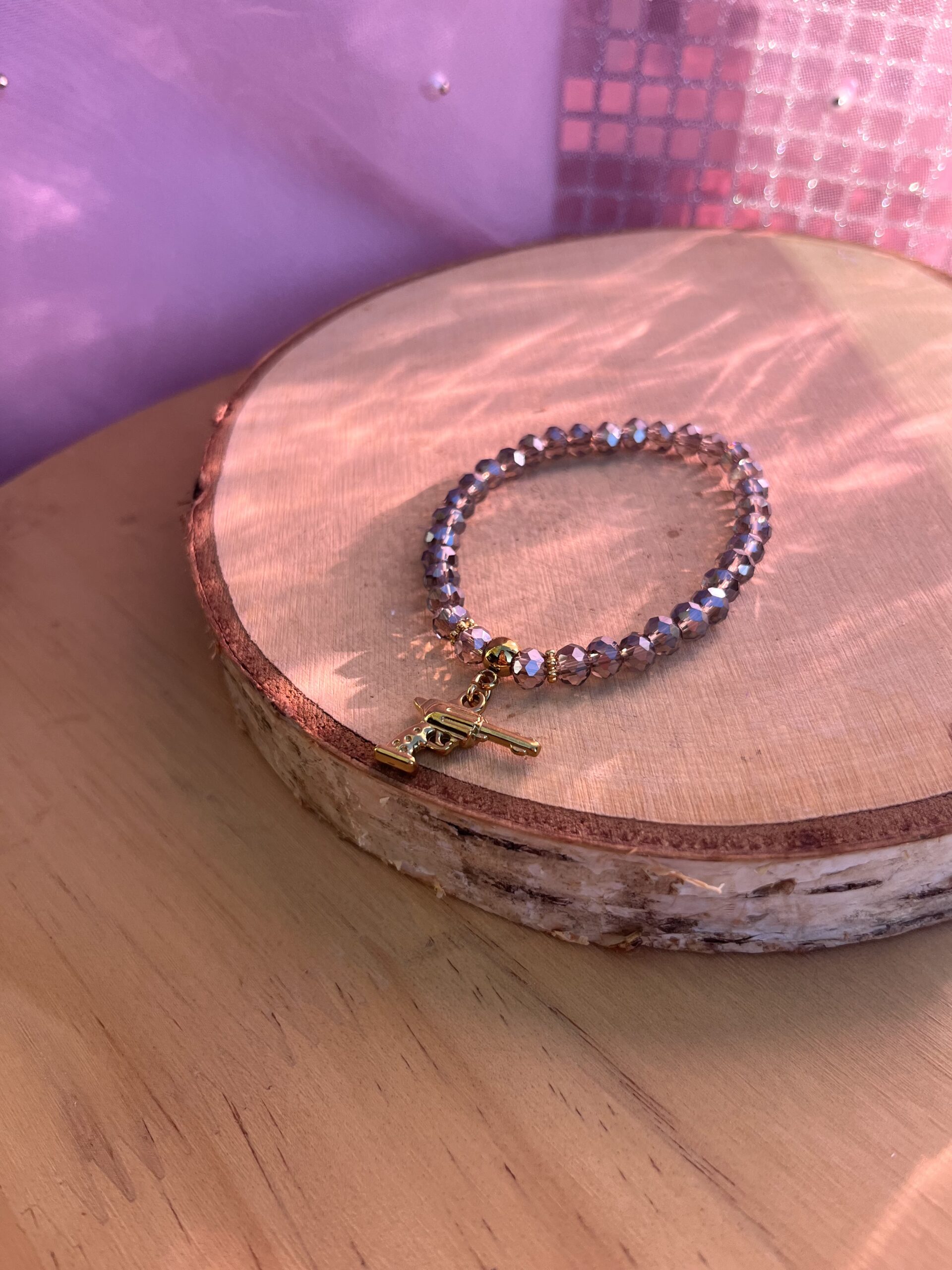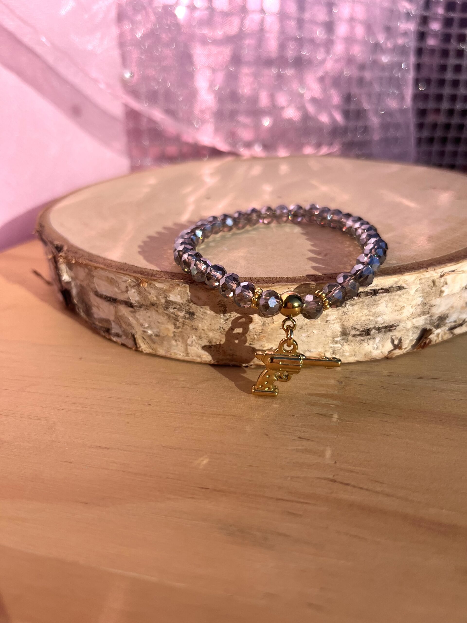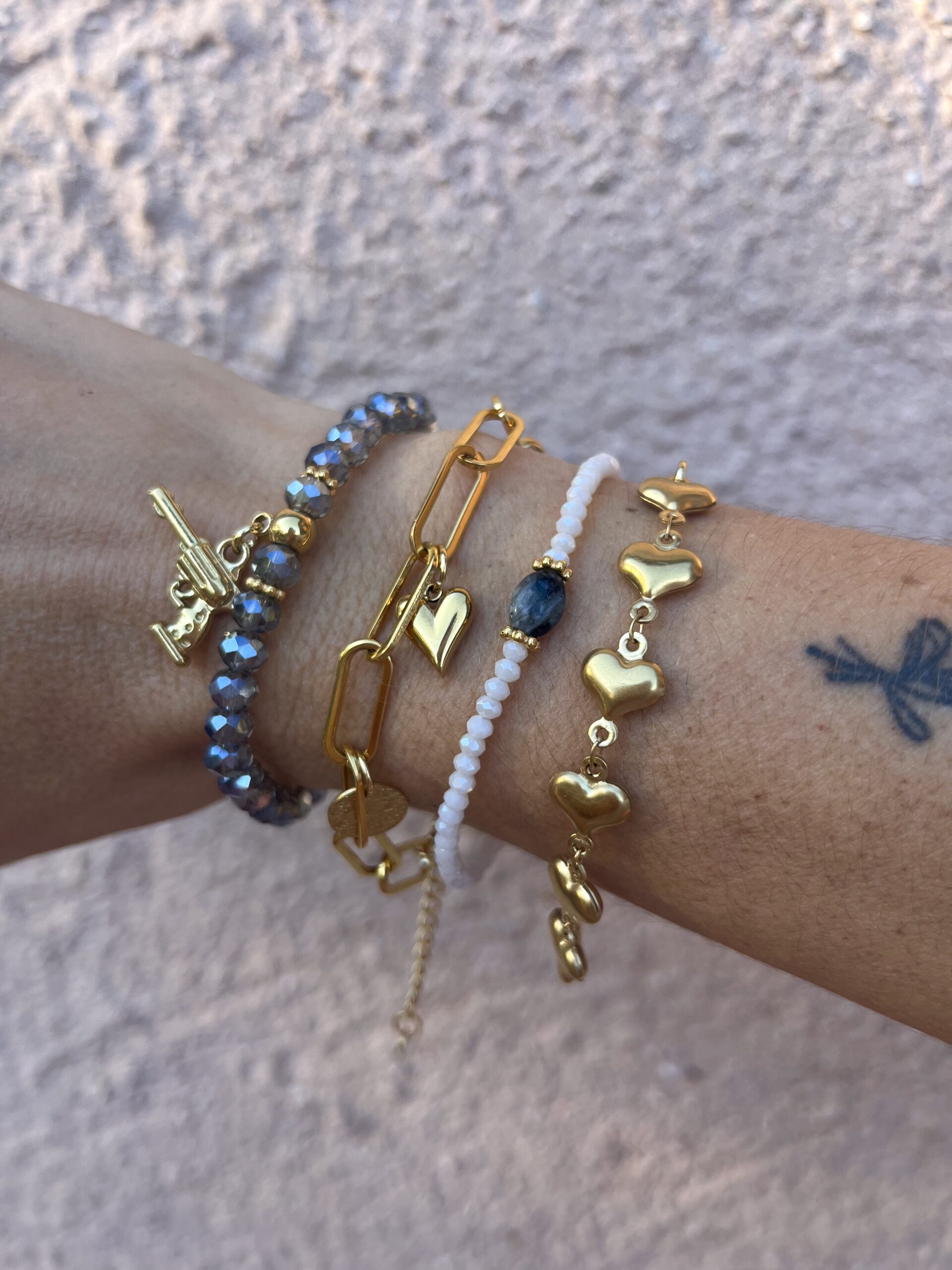 - Bracelet élastique en perles de verre et ornée d’une perle en acier inoxydable