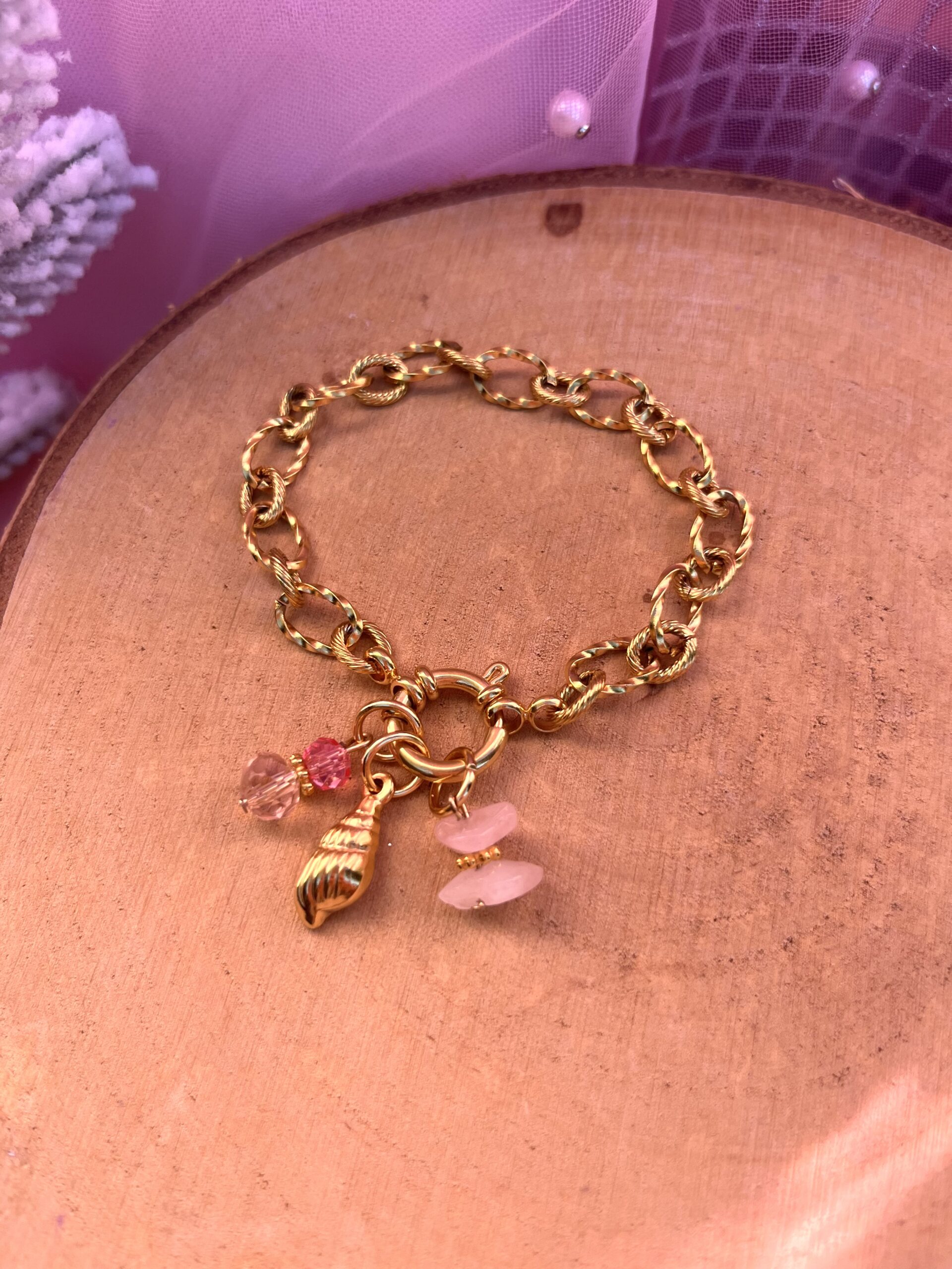 - Orné de 3 pampilles en acier inoxydable, quartz rose et perles en verre