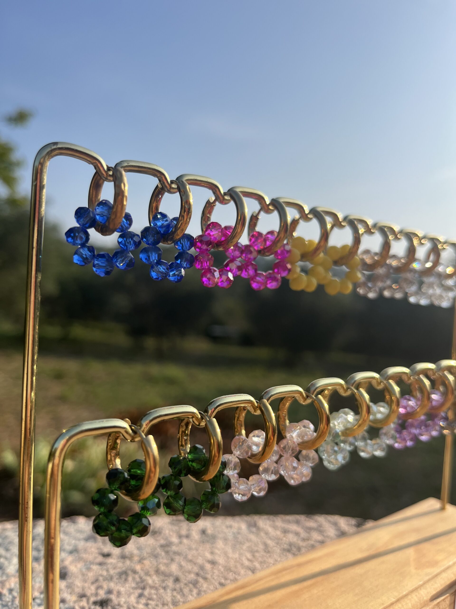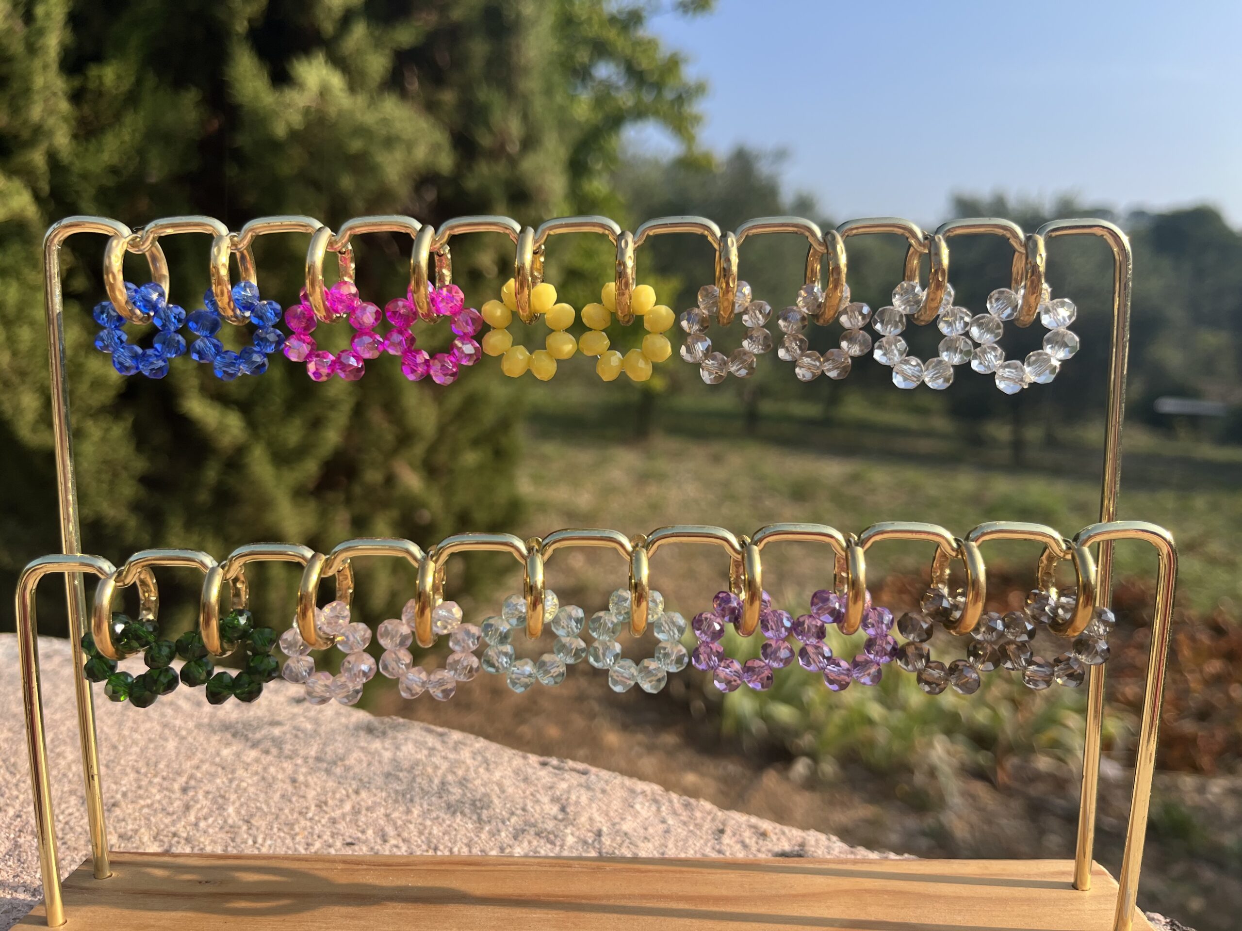 - Anneau de perles en verre de couleur bleu,rose, jaune, champagne, transparent, vert, rose clair, turquoise, violet ou topaze (couleur à choisir lors de la commande)