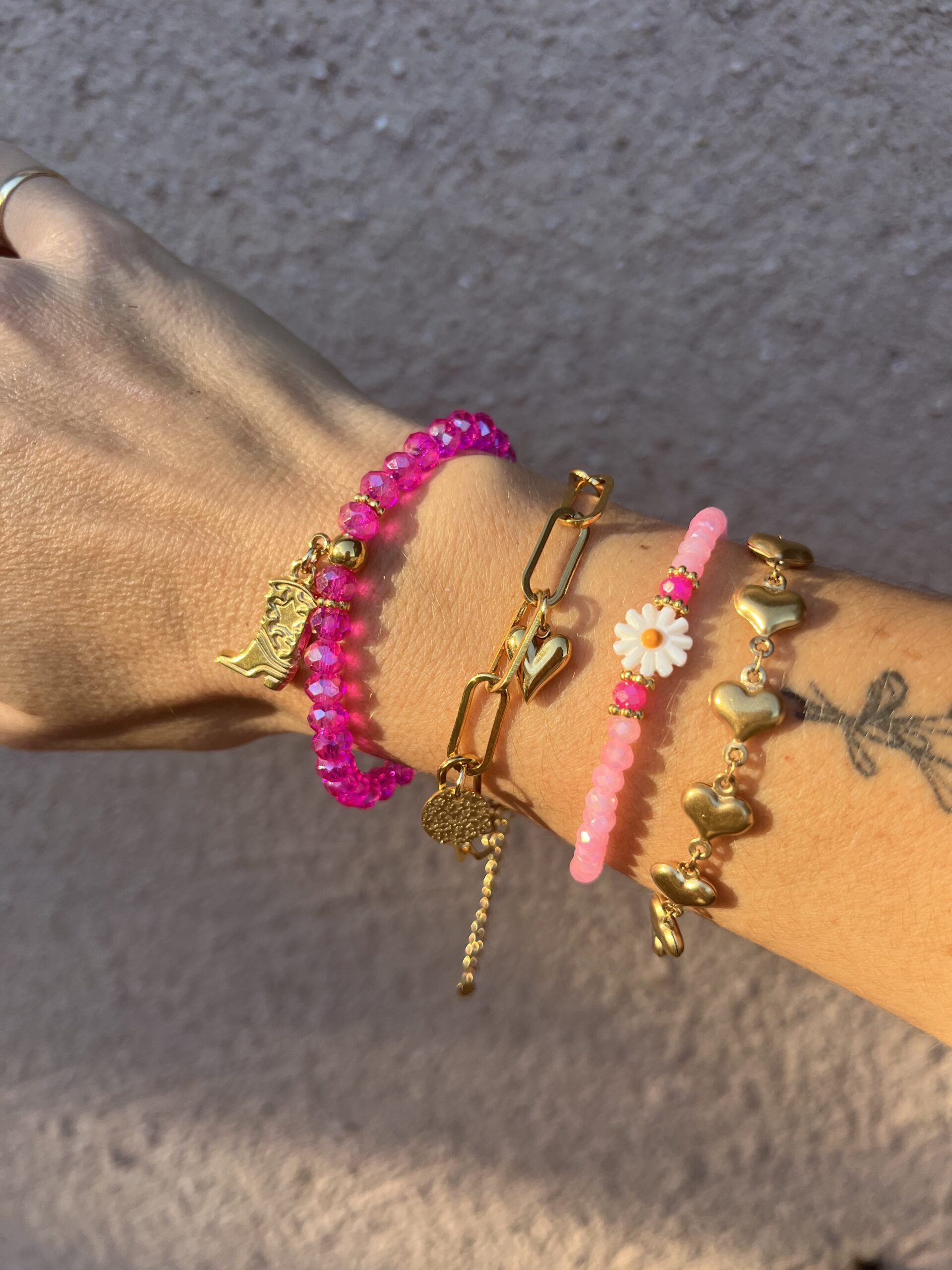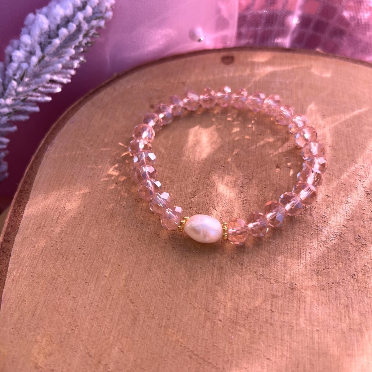 - Bracelet élastique en perles de verre et ornée d’une perle en acier inoxydable
