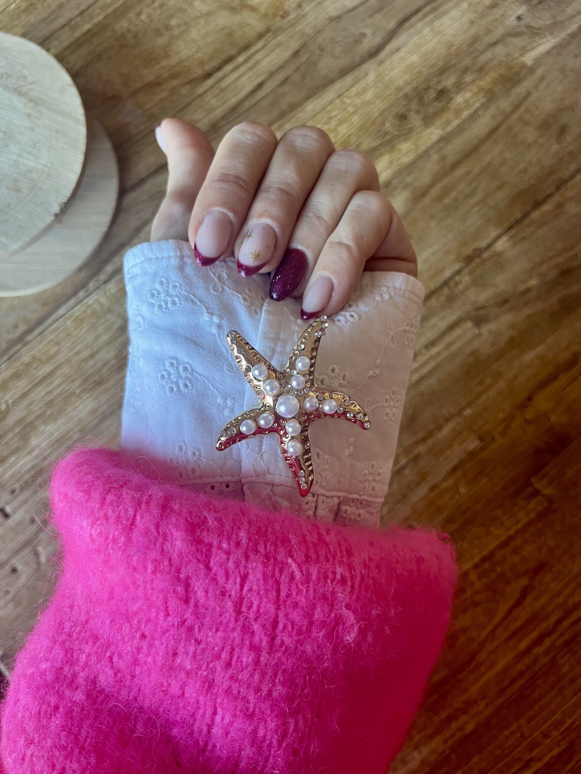 - ornés d’étoile de mer doré et et de perles en verre cirés