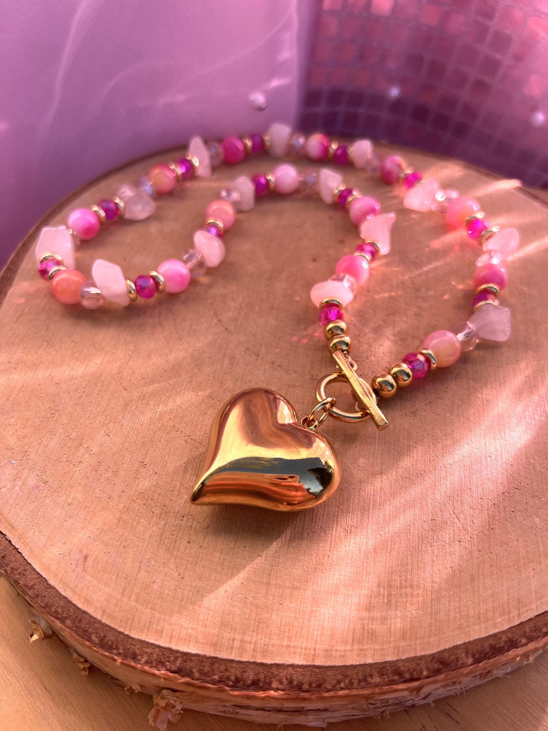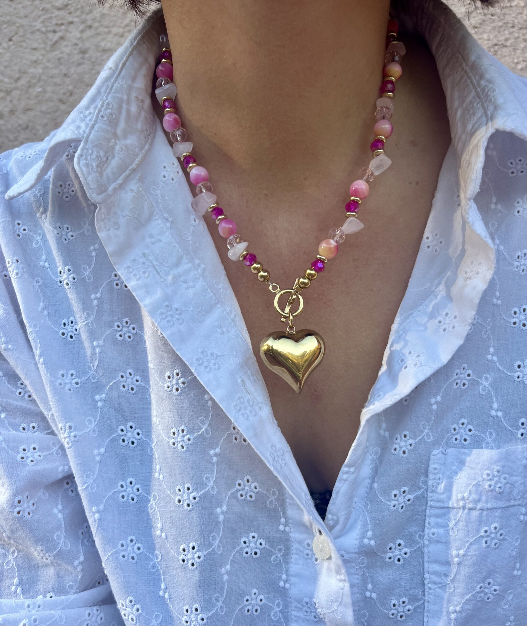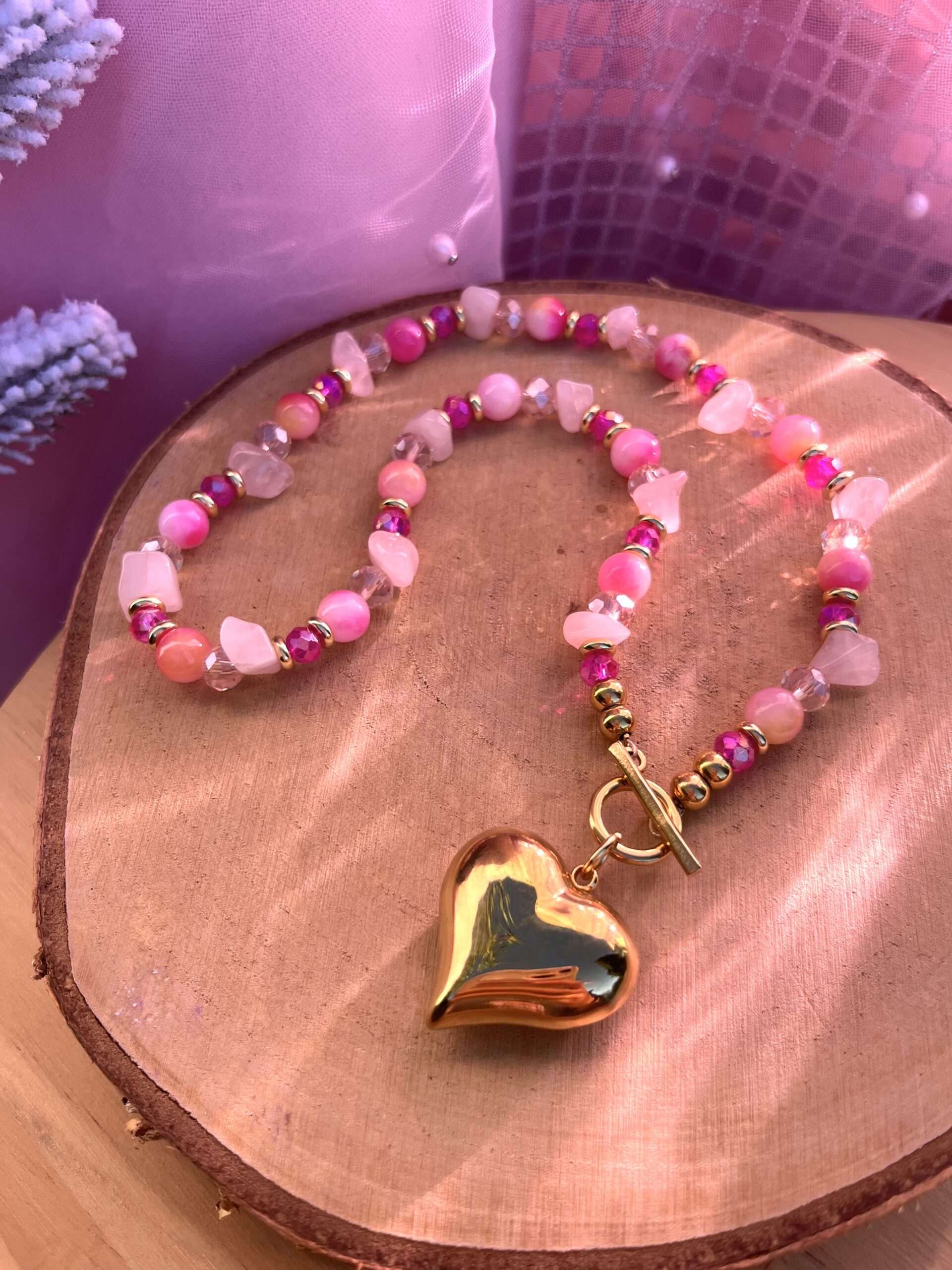 - Le fermoir et la pampille coeur sont en acier inoxydable